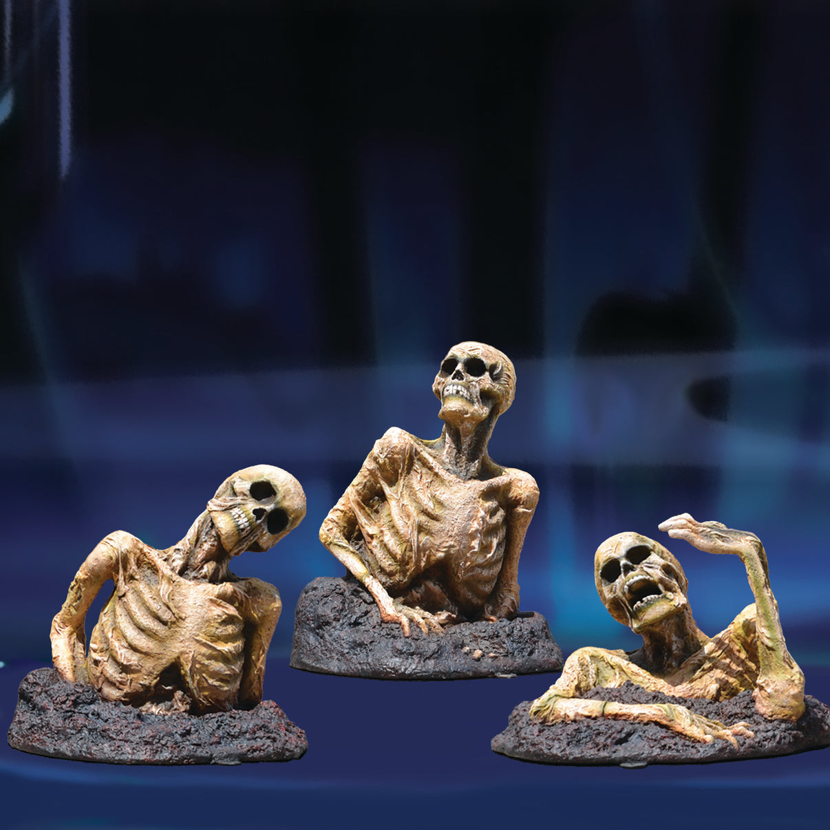 Make your Halloween scary this season with our Zombie Brothers Set of 3 Crazy Skeleton figures. Standing 19.5", 25.38" and 31.25" high, these statues are designed by Heinimex to serve as the fun and spooky centerpiece of any professional or residential halloween display.