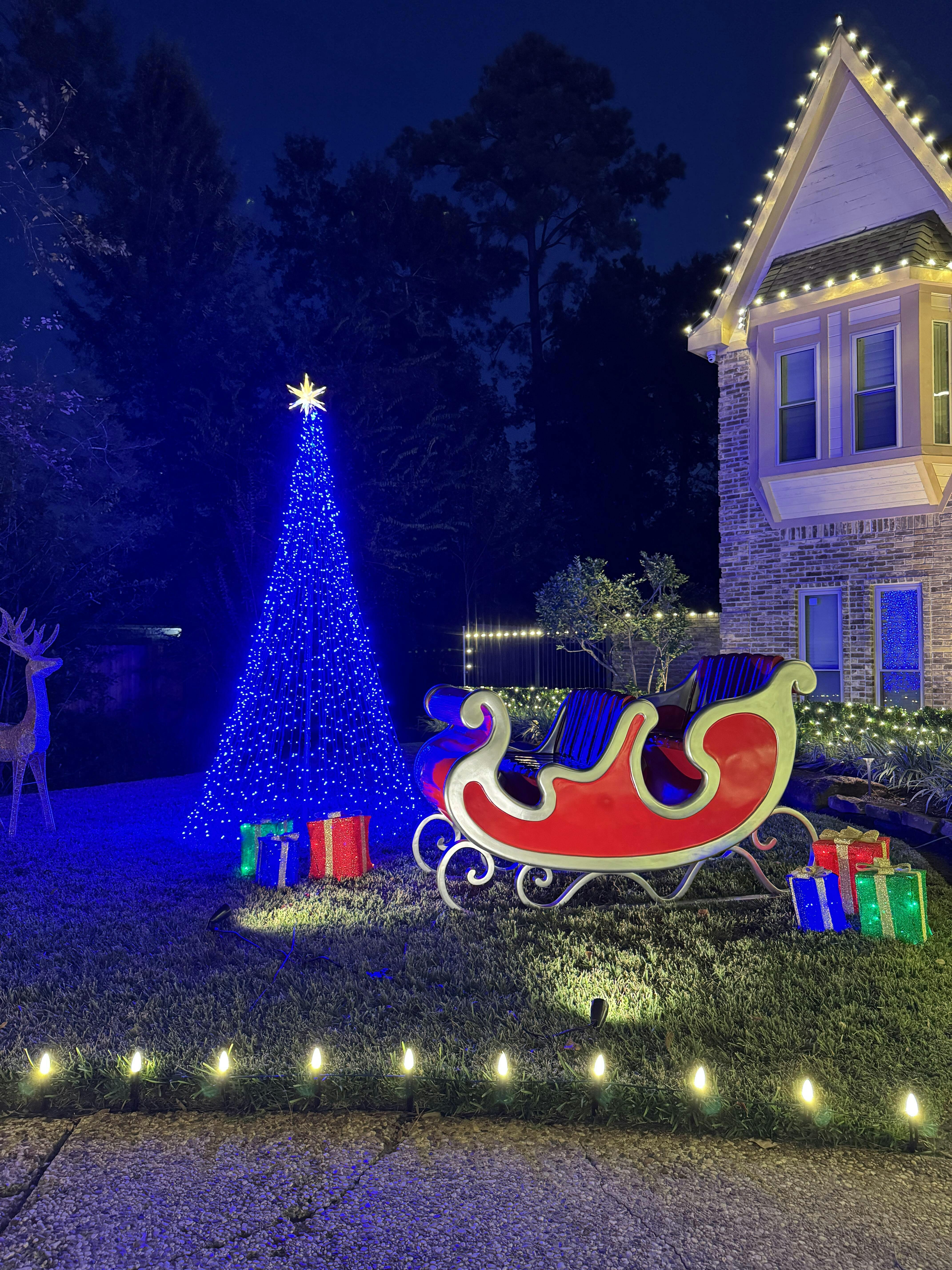 Alone, or paired with the other pieces from our Christmas Night Santa Sleigh Collection, this 91-inch red sleigh stands out in vibrant, festive color against the white backdrop of a winter wonderland. Deluxe four seater holds up to four people...